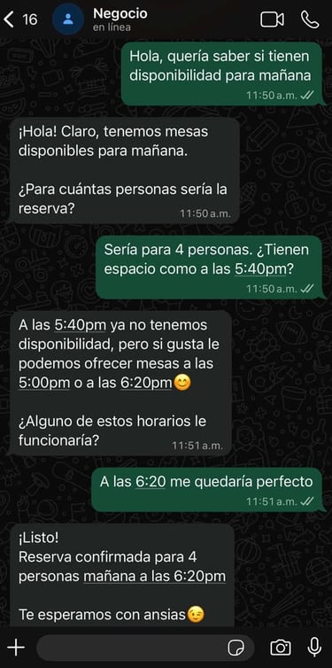 Respuestas inmediatas, guía la conversación y ayuda a convertir consultas en reservas sin intervención manual del negocio.📆