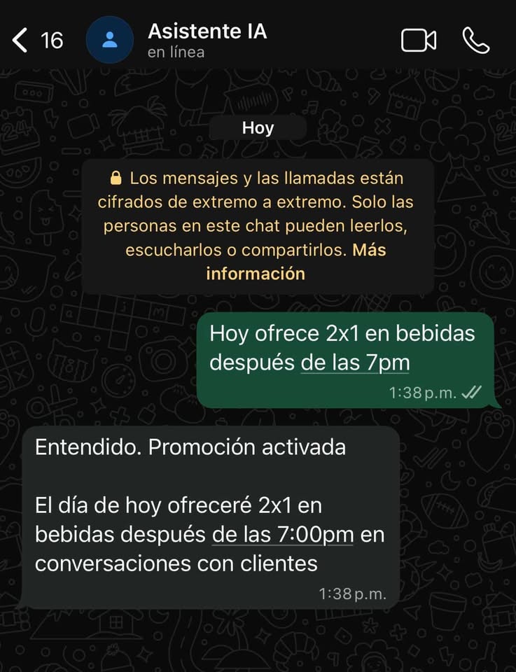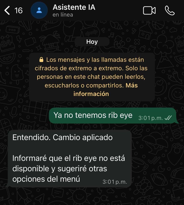El sistema entiende el cambio y lo aplica inmediatamente al hablar con los clientes.⏱️✔️
